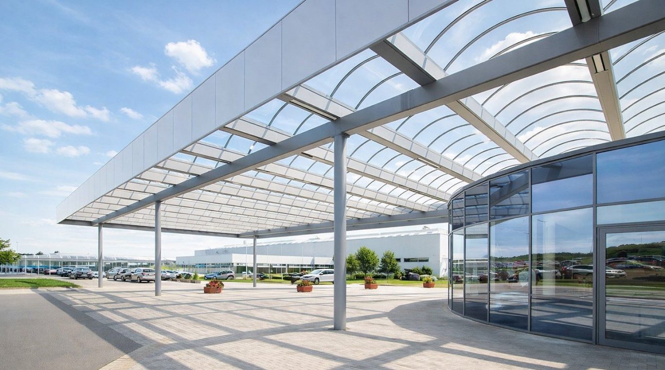 PKW-Verkauf, Gehwege oder Pausenhalle – die lichtdurchfluteten Dachkonstruktionen bieten fast unbegrenzte Gestaltungsmöglichkeiten.